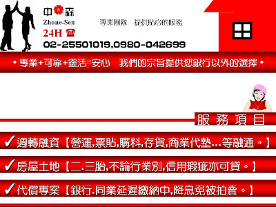 銀行二胎房貸資格不符合?「中森借貸網」房屋二胎,二胎救急申請便利,專辦銀行拒絕、信用遐庛。02-25501019