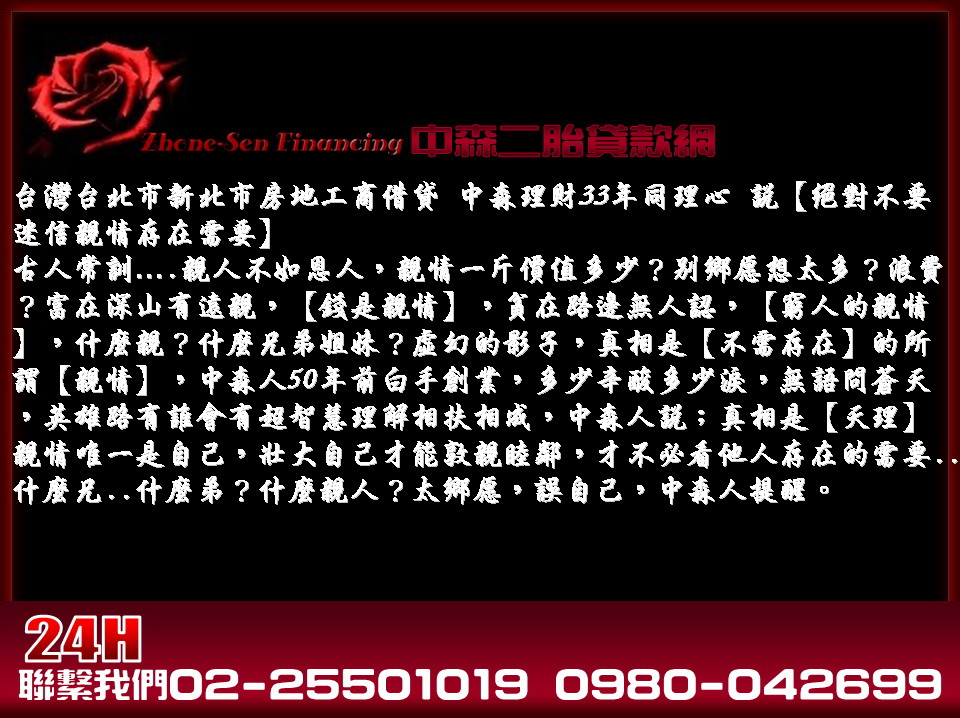 台灣台北市新北市房地工商借貸 中森理財33年同理心 說【絕對不要迷信親情存在需要】