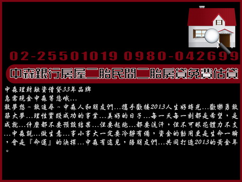 銀行房屋二胎民間二胎房貸中森免費估貸02-25501019 0980-042699洪經理