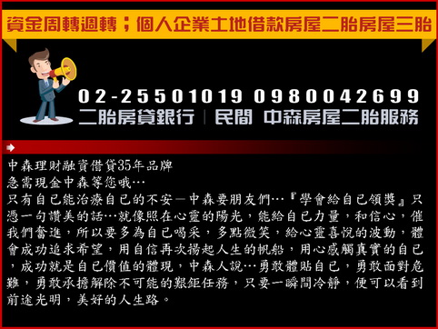 資金周轉週轉;個人企業土地借款房屋二胎房屋三胎