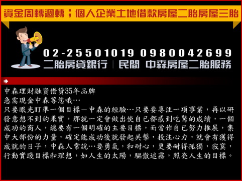 資金周轉週轉;個人企業土地借款房屋二胎房屋三胎