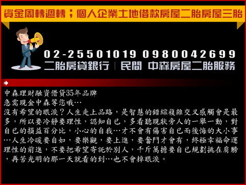 資金周轉週轉;個人企業土地借款房屋二胎房屋三胎