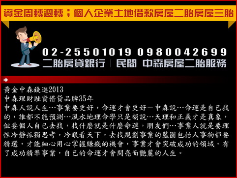 資金周轉週轉;個人企業土地借款房屋二胎房屋三胎