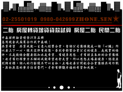 房屋貸款,房屋二胎,民間二胎,房貸二胎,房屋轉貸,房屋增貸,房貸轉貸,房貸增貸,二胎房貸,二胎貸款,二胎借款,二胎借貸,二胎代償,餘額代償,房屋二胎房貸,房屋二胎貸款,房屋二胎借款,房屋二胎借貸,房屋二胎代償,民間二胎房貸,民間二胎貸款,民間二胎借款,民間二胎借貸,民間二胎代償,房屋轉貸增貸,房貸轉貸增貸,個人貸款,企業貸款,工商融資,企業融資,支票借款,支票融資,支票貼現,票據融資,票貼,貼現,周轉週轉,借錢,借貸,借款,融資,貸款,需要現金週轉,資金週轉,民間借款,現金週轉,急用借款,快速借錢,短期借貸,個人借貸,融資借款,資金周轉,資金周轉,借錢週轉,借錢缺錢,哪裡可以借錢,借現金,如何借錢,借錢管道,銀行房屋二胎,民間房屋二胎,二胎房屋銀行,二胎房屋民間,二胎房貸銀行,二胎房貸民間,房屋貸款轉貸,房屋貸款增貸,台北土地借款房屋二胎,桃園土地借款房屋二胎,台中土地借款房屋二胎,台南土地借款房屋二胎,高雄土地借款房屋二胎, 銀行貸款,民間貸款,低利貸款,借錢救急,支票換現金,公司貸款,融資公司,週轉金,房子抵押貸款,房子查封, 房屋抵押貸款流程,房子抵押貸款利率,用房子抵押貸款,抵押房子貸款,房子抵押貸款 保證人,台灣銀行房屋抵押貸款利率遲繳,房屋抵押貸款 買房,房屋抵押貸款利率,房子抵押貸款利率,房子抵押貸款 賣房,房屋 抵押貸款,無收入房屋抵押貸款,房子抵押借款,房貨利率試算,房屋,房貸怎麼算,貸款買屋,房貸額度立即試算,負責人貸款,公司貸款,行號負責人貸款,負責人借貸,攤販貸款,負債整合,整合負債,擺攤能貸款嗎,貸款試算 本利攤還,夜市攤販銀行貸款民間貸款,貸款利息 每月攤還,攤販老闆銀行貸款民間貸款,貸款利率,利息,貸款試算,房屋貸款試算,農地貸款,廠房貸款,住宅貸款,商辦貸款,利息試算,保單貸款額度已滿,房貸利息,貸款利息計算方式,