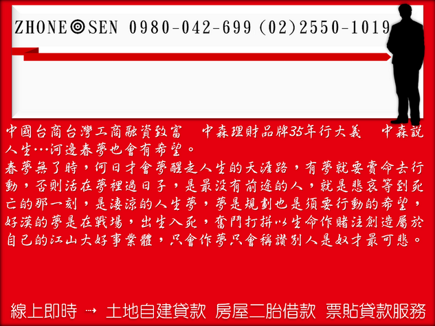 【企業融資方法.tw】借款利息諮詢 - 房屋土地借款 應收票據貼現 0980 042 699 洪經理