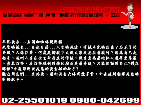 Zhone-Sen Financing房屋貸款 房屋二胎 民間二胎助還代償增額降息