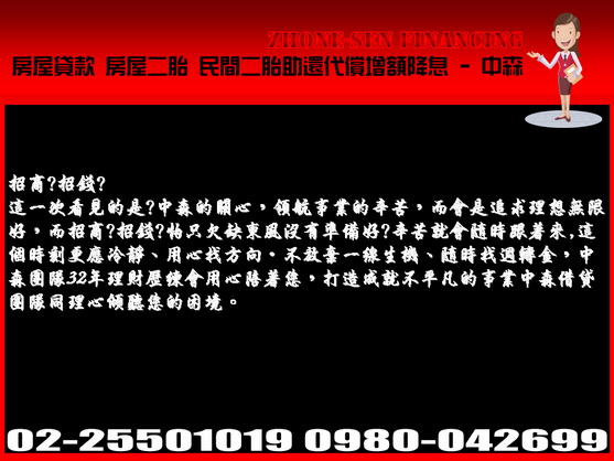 Zhone-Sen Financing房屋貸款 房屋二胎 民間二胎助還代償增額降息